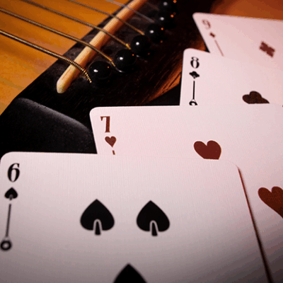 The Ace of Spades showcases a beautiful intricate design that is classic, yet stylish. The featured virtuoso guitarist adds to the identity of the deck. The No.052 came from a string gauge size which coincidentally matches the number of cards in a standard deck. Six Strings features an intricate, mirrored card back design inspired by the stringed instrument. The attention to detail and meticulous craftsmanship makes this deck one of a kind.