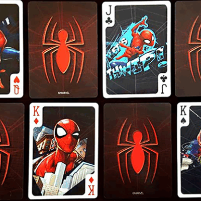 The Jack, Queen, and King have a dynamic motion design, and the Joker features the front and back of Spider-Man to create a fun look!